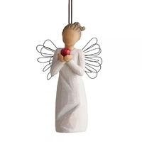 This piece features an angel in a cream dress with wire wings, holding a large shiny red apple in her hands. Hook and loop affixed to figure's head.