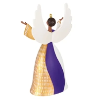 Add heavenly joy to the holidays when you display this Christmas tree ornament. Raising her hands up, this angel reminds us of the light God brings to our lives each and every day. Detailed wings and a beautiful gold, purple and white gown with shimmery accents make this divine decoration a true gift from above.