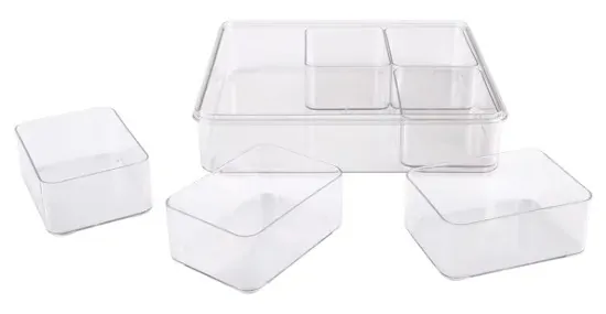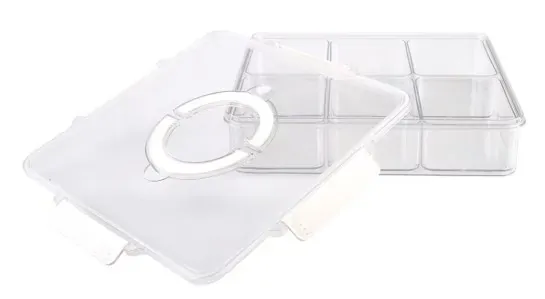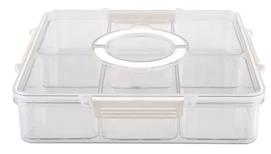 ALFRESCO LANE 6 COMPARTMENT SQUARE GRAZING BOX WITH CARRY HANDLES - CLEAR