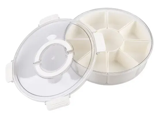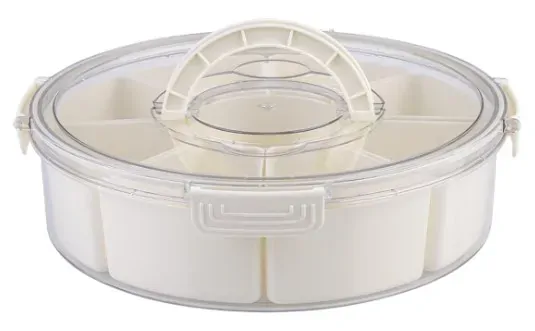 ALFRESCO LANE 9 COMPARTMENT ROUND GRAZING BOX WITH CARRY HANDLES - CREAM