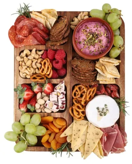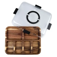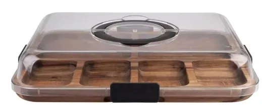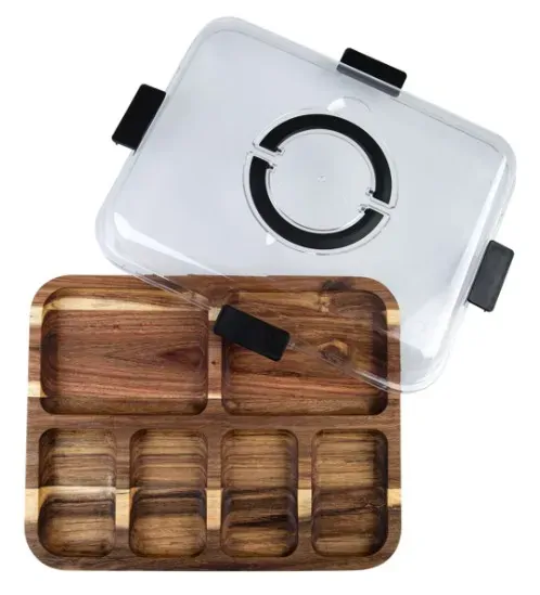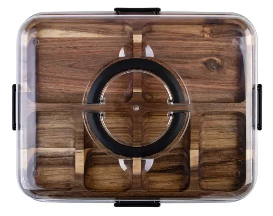 ALFRESCO LANE ACACIA WOOD 5 COMPARTMENT RECTANGULAR GRAZING PLATTER WITH LID