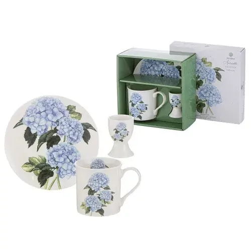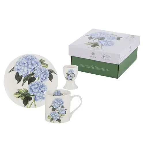 Bring brightness to the morning with the Aurielle breakfast gift set, decorated with beautiful hydrangeas. The box includes a carefully crafted mug, egg cup and side plate perfect for enjoying a delicious breakfast or serving breakfast in bed to a loved one.