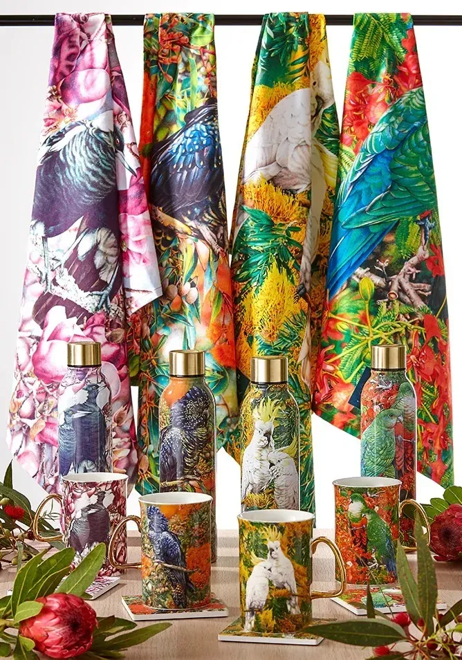 Among the gum leaves lies creatures unique and magnificent in their beauty, the birds of Australia. Heidi Willis’ hand-painted illustrations of native birds are truly eye catching, showcasing her subjects in their vibrant habitats. Showcasing gorgeous flora and fauna of the Australian backyard.