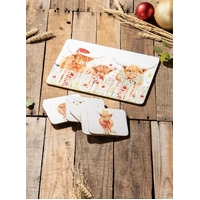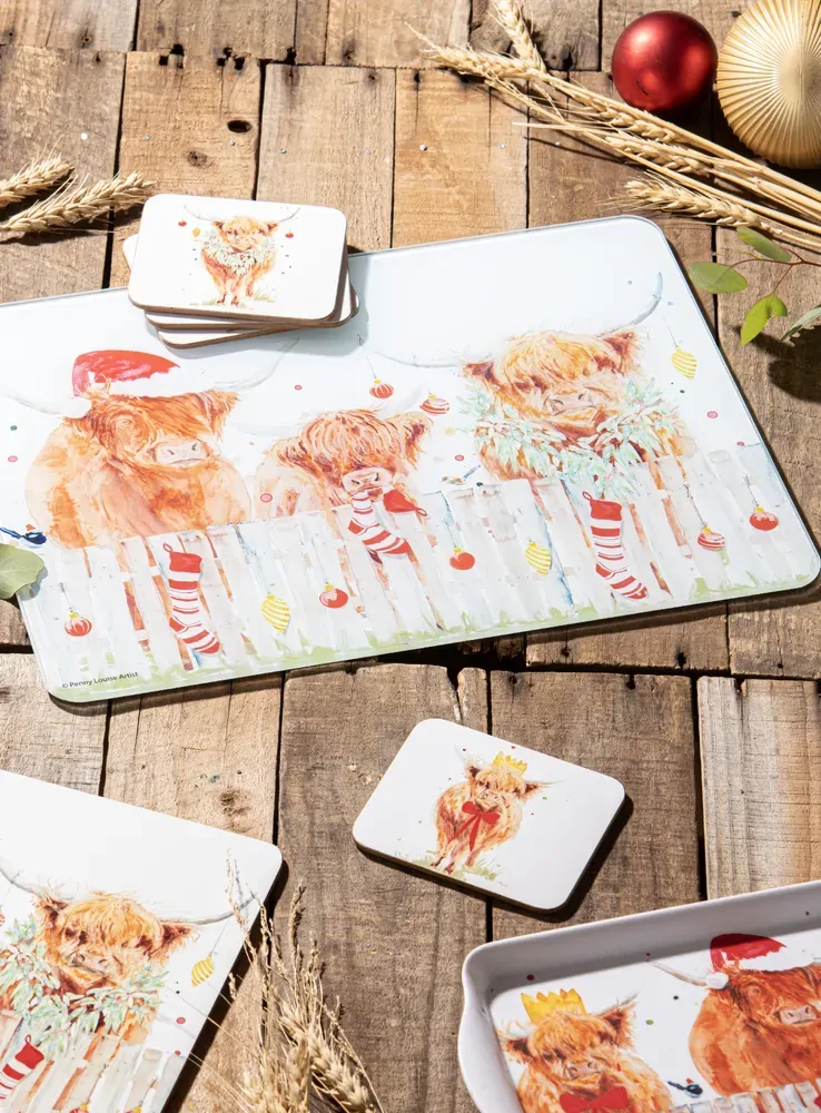 From Ashdene's Coo Christmas range, a pack of 6 drink coasters featuring adorable highland cows adorned in Christmas décor. Perfect for Christmas table settings.