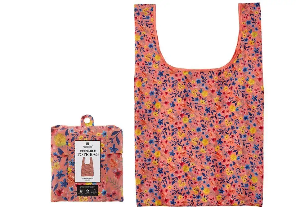 FLOWERING FIELDS REUSABLE TOTE BAG - PEACH