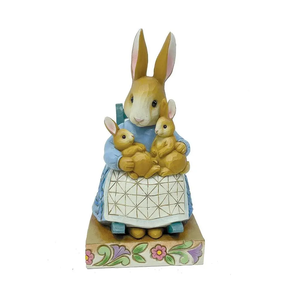 Snuggled against their mother's chest, two baby bunnies snooze soundly as Mrs. Rabbit watches over lovingly. Adapted directly from the page, Jim Shore brings this Peter Rabbit illustration to life with caring craftsmanship and endearing detail.