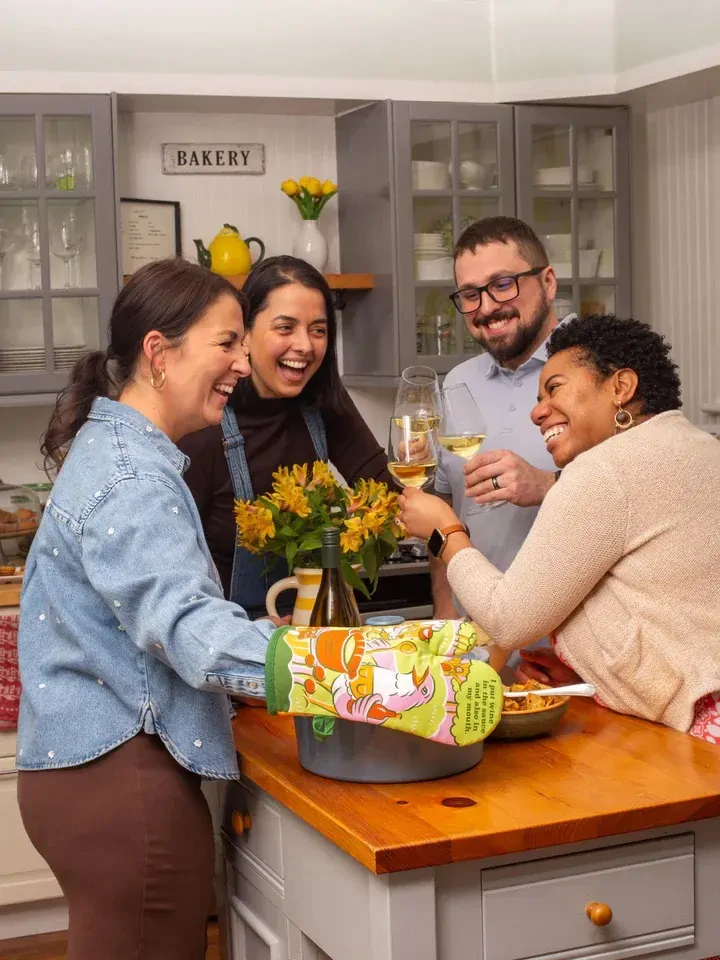 - Oven Mitt Reads: "I put wine in the sauce and also in my mouth."