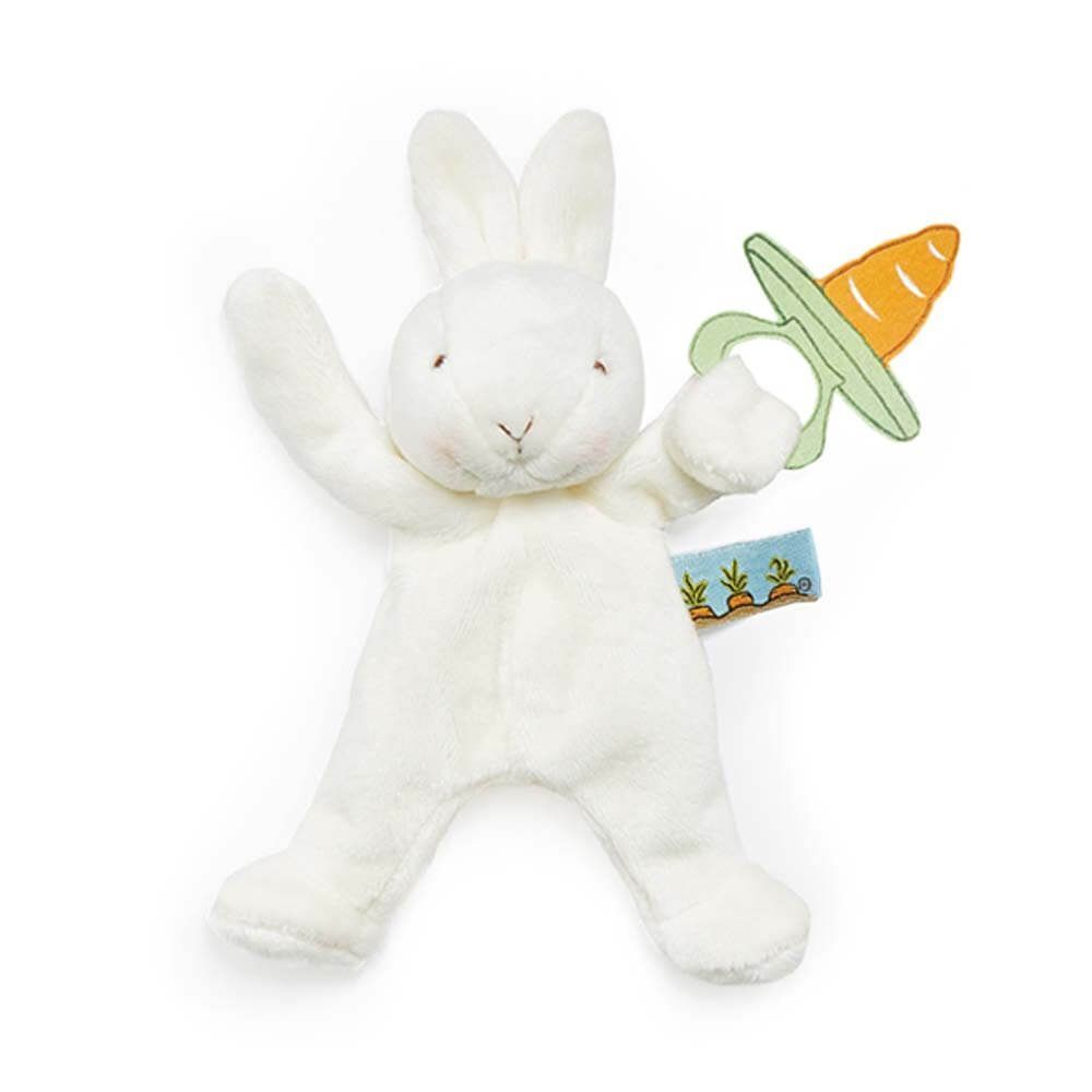 This beautifully crafted 20cm Bunny Wee Silly Buddy is sure to soothe baby's troubles away with its floppy ears, delicately embroidered facial details and super-soft velour fabric in a lovely shade of white. A handy velcro loop on Bunny's paw will keep baby's dummy secure, whilst a gentle internal rattle will captivate and delight your little one's ears. Perfect for home or on-the-go.