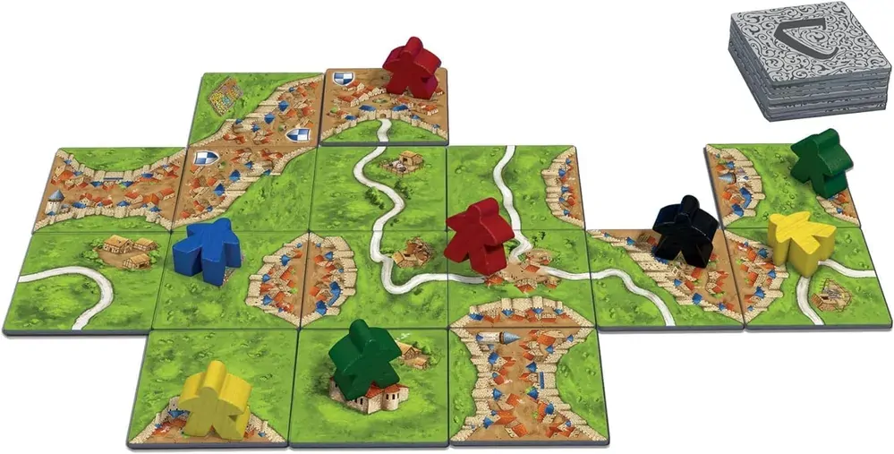 Players choose from tiles that depict cities, roads, monasteries, and fields; each new tile placed creates an ever-expanding board on which players can then add their followers. Players score points by having followers on features as they're completed. The player who makes the most strategic placements of tiles and followers will score the most points and win the game.