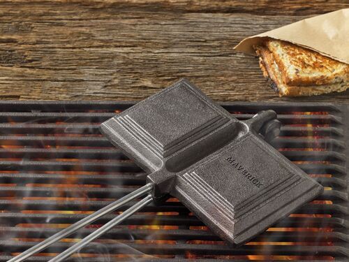 Ideal for camping and outdoor cooking. Produce the ultimate cheese toastie. Place ingredients inside jaffle plate close and use long handle to help cook over heat.