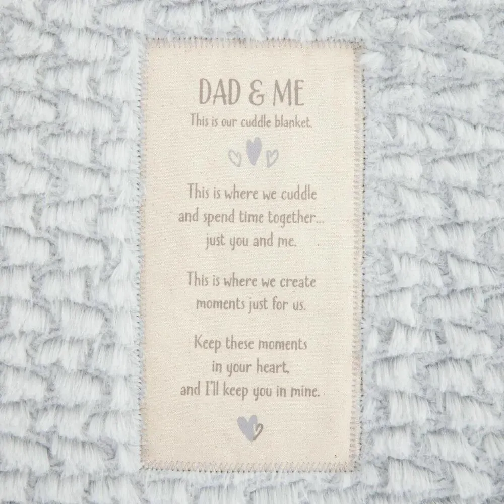 The Dad and Me Cuddle Blanket is the perfect cuddly gift for any little one or new dad. This super-soft blanket features an oversized design in a neutral gray color with a sewn-in patch at the front adorned with a heartfelt sentiment about the joy of being a dad. This blanket is part of our Cuddle Moments collection. This line is perfect for inspiring warm and snuggly moments among friends and family alike, with super-soft blankets and more. This blanket is crafted with machine-washable and super-soft fabrics with beautiful colors and designs for the perfect gift for any little one.