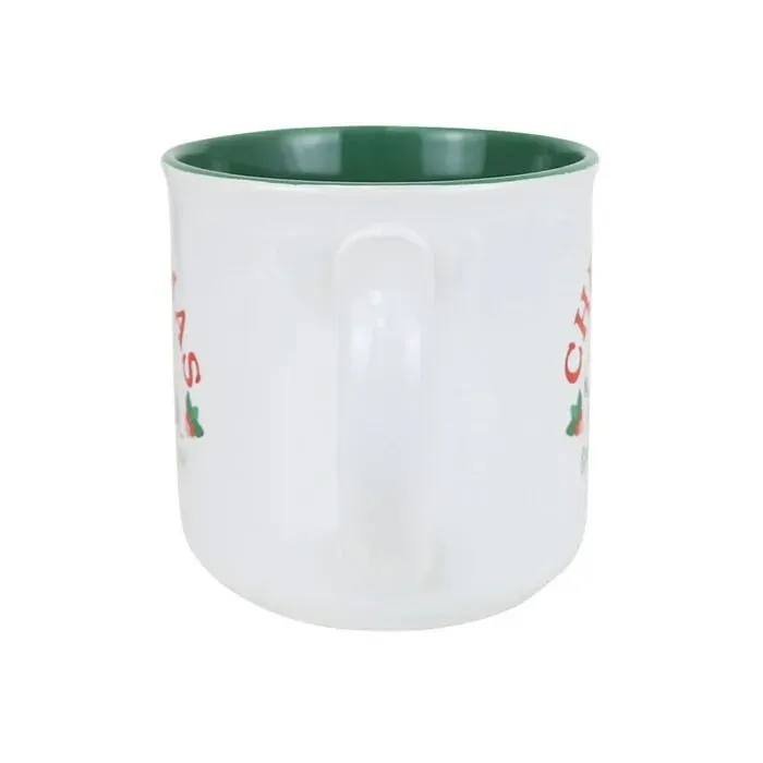 The Merry Christmas from Me to You stoneware mug from Peanuts features Snoopy and Charlie Brown exchanging gifts under the Christmas Tree.