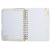 With a faux-leather padded shiny gold cover showcasing Stitch and accented with black and gold flowers, this 160 page Disney Britto Midas Notebook features 4 different alternating page designs with subtle gold patterns and is finished with stunning gold wire binding and a zinc alloy Disney Britto logo charm in the bottom right corner of the cover. This notebook measures 16cm in width and 20cm height and will make a lovely collector item for Disney and Britto fans alike, to commemorate Disney's 100th Anniversary.