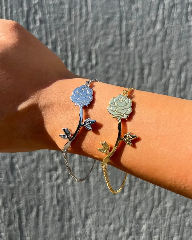 Enchantment awaits you with this dainty and delicate rose bracelet. Presenting intricate detail with understated glam, this feminine design can be your symbol of the magic within you.
