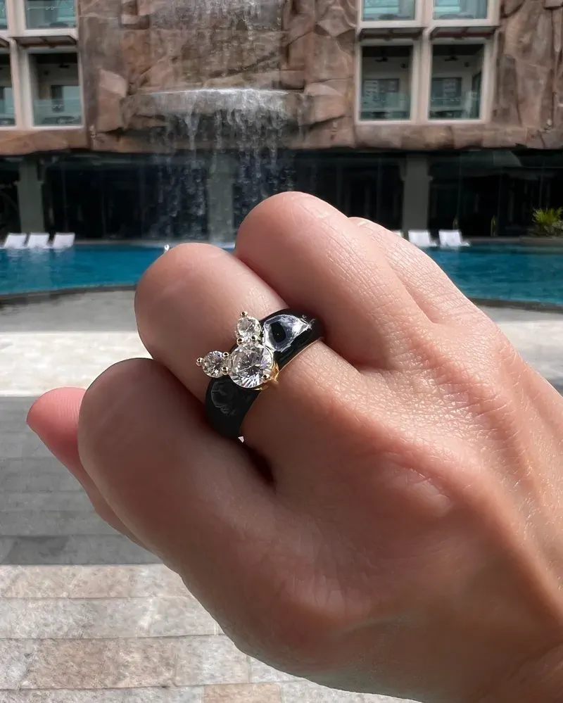 This delightful accessory combines sleek black enamel and sparkling cubic zirconias meticulously set in the iconic shape of Mickey's head. It's like wearing a dash of Disney magic on your finger. With this ring, you're not just accessorising; you're making a dazzling statement that's playful and sophisticated. Whether you're strolling through the park, heading to a Disney-themed event, or just adding a touch of Disney flair to your everyday life, this ring will be your go-to accessory. It's all about the details, and this Mickey Mouse Ring has them in spades. Get ready to shine and make every day a bit more magical!