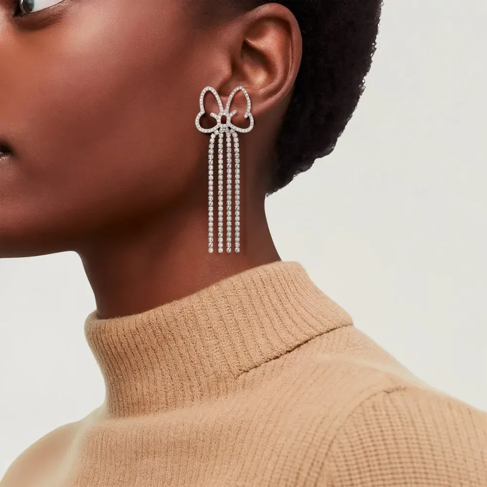 COUTURE KINGDOM - DISNEY D100 - MINNIE MOUSE CRYSTAL BOW DROP EARRINGS WHITE GOLD