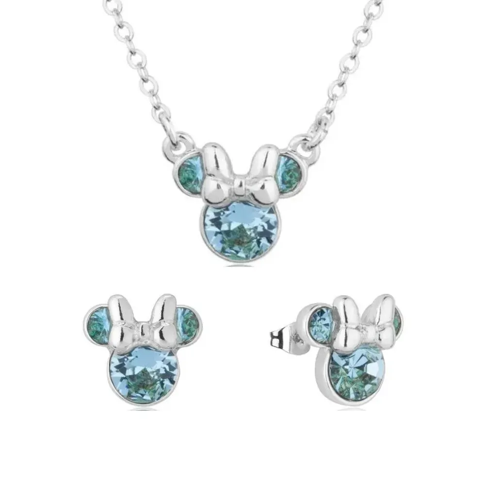 1 x Disney Couture Kingdom - Minnie Mouse - March Birthstone Necklace Silver