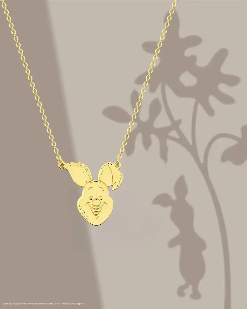 Sweet as honey is Pooh's kind hearted bestie, Piglet. This classic minimalistic etched necklace depicts Piglet's happy smiling face.