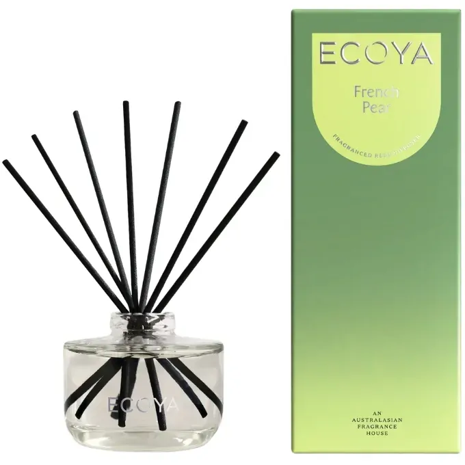 Enhance your space with the ECOYA Reed Diffuser, housed in a sleek glass vessel with a soft, rounded base. Complete with black synthetic reeds, it provides long-lasting and beautiful fragrance for up to six months. Perfect for gifting or adding a touch of elegance to your home.