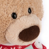 Celebrate the holidays with Sleigh! This special holiday-themed Toothpick bear sports a colourful green, white and red sweatshirt with vibrant wintry embroidered details. This festive bear is ready to welcome the winter weather with a smile, and even his colourful sweater is decorated with happy smiling snowmen and snowflakes! At 38cm tall, he's ready for on-the-go like the rest of our Toothpick pals, and his slender, unique profile is perfect for collectors and cuddlers of every age and personality. Surface-washable; appropriate for ages 1 and up.