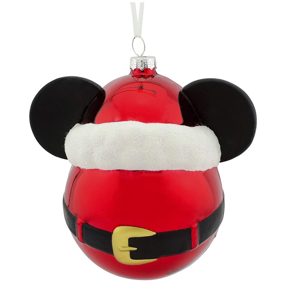 Bring your love of all things Mickey Mouse to the Christmas tree with this fun blown-glass ornament. Shaped like the iconic mouse ears, it features a Santa hat and belt detail for a perfect holiday accent. Hallmark Ornaments celebrate characters and personalities from contemporary and classic movies, TV shows, toys, entertainment and sports.