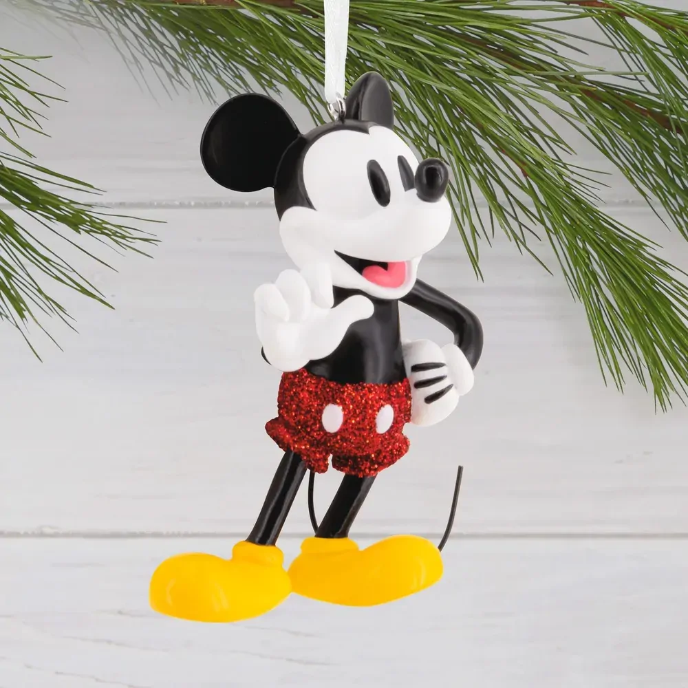 Delight Disney fans of all ages with this Christmas tree ornament featuring a classic Disney Mickey Mouse design. Dressed in his trademark yellow shoes with sparkly red pants, the iconic Disney pal stands in a friendly pose to brighten your holiday decor for years to come.