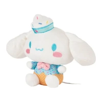 Sweeten up your plush collection with the adorable Cinnamoroll Ice Cream Plush! Dressed in a pastel ice cream inspired outfit and topped with a cute matching hat, this lovable Sanrio character is ready to serve up smiles. Featuring soft, fluffy fabric and charming embroidered details, Cinnamoroll looks extra delightful holding his waffle cone treat. Perfect for cuddles, display, or gifting, this plush is a must-have for fans of all things cute and kawaii.