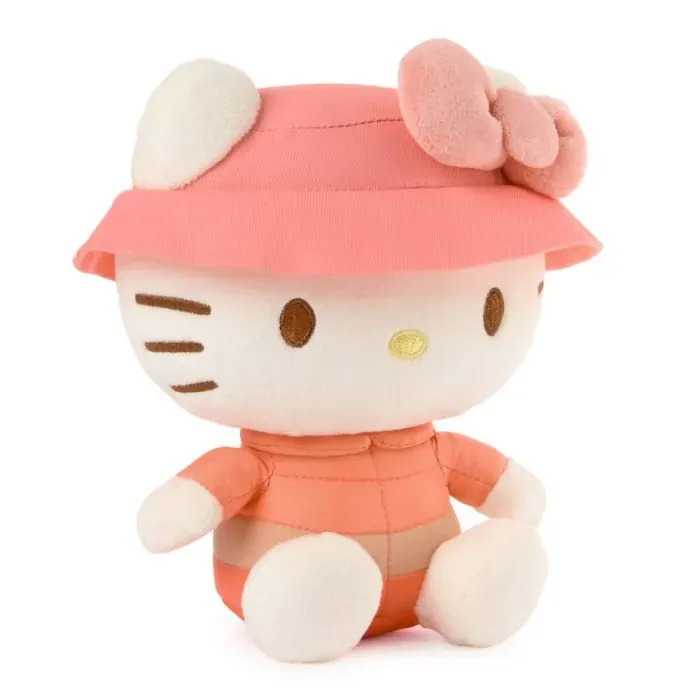 From hiking and exploration to fireside s'more snacks and stories, Hello Kitty and Friends are here for a camping adventure! Join Hello Kitty as she ventures into nature in an adorable outdoorsy outfit, including a tri-colour puffer jacket in warm pink and coral hues, a cute pink bucket hat, and her iconic bow. This soft and cuddly plush toy sits balanced upright on its own, sized for play and display in any kawaii toy collection.