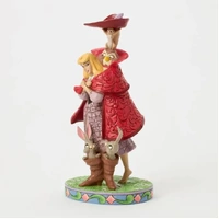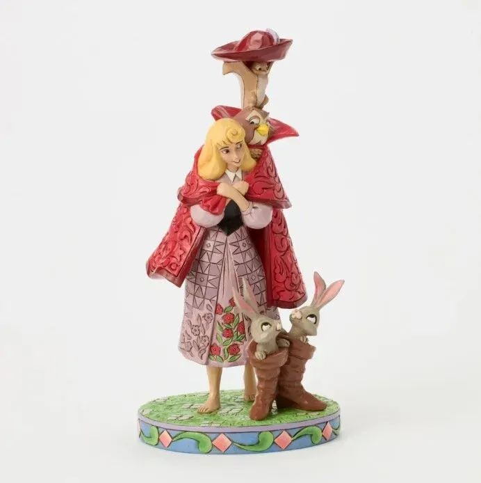 Aurora's forest friends transform into a man in a red coat as she searches for her prince. An owl, squirrel, and bunnies inside boots add charm to this captivating Jim Shore design, bringing the memorable movie scene to life with enchantment.