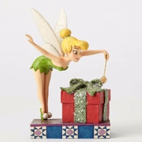 Tinker Bell sprinkles her sparkling fairy dust on the silvery ribbon of a Christmas package in this captivating design featuring the rich colors and heartelt folk art style that is unmistakably Jim Shore.