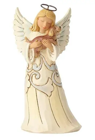 This endearing pint sized angel is the perfect gift to brighten the day of dog lovers everywhere. Nuzzling a loving pup, she exudes warmth and love. The 5" hand-crafted angel is sculpted in wonderful detail and finished in gentle White Woodland colours.