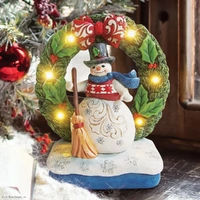 JIM SHORE HEARTWOOD CREEK - SNOWMAN IN LIGHT UP WREATH