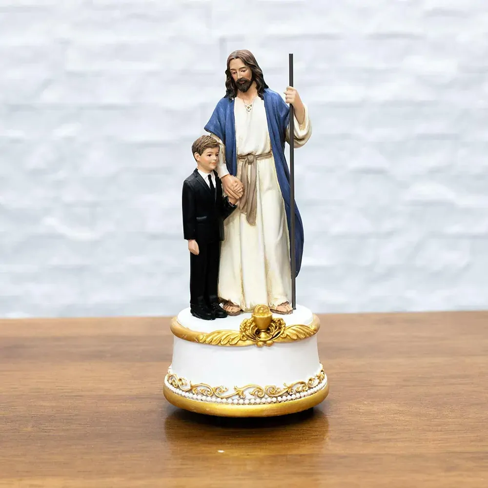 This Musical Figurine will make the perfect First Holy Communion Gift. The musical figurine shows the young boy in his Communion suit and his hands folded with Jesus crouching beside him with his arms outstretched around him.