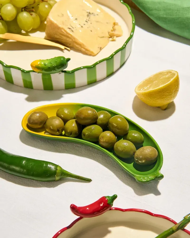 Add a touch of playful charm to your table with the Seaview Stoneware Big Dill Dish. Designed for both everyday use and entertaining, this dill-pickled-shaped stoneware dish features hand-painted, finished with a whimsical dill motif that brings personality and colour to your serveware collection. Crafted from durable glazed stoneware, the dish is perfectly sized for serving olives, dips, condiments or small snacks. Whether used as part of a grazing spread, placed beside a cheese board or styled on open shelving, this small dish adds character wherever it's used. The playful design pairs beautifully with other pieces from the Seaview collection, making it easy to create a cohesive and joyful tablescape. Ideal as a thoughtful gift or a functional addition to your own home, the Seaview Stoneware Big Dill Dish celebrates colour, craftsmanship and playful entertaining. A charming little piece that proves even the smallest details can make a big impact.
