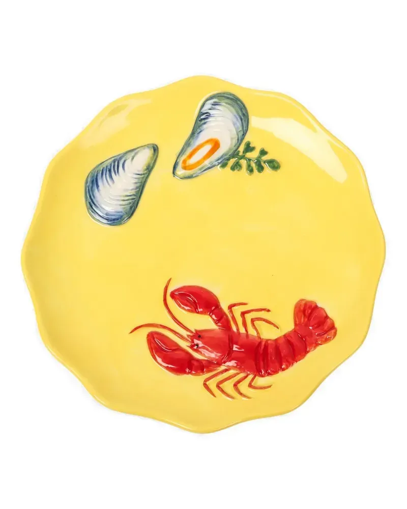 Bring a playful coastal touch to your table with the Seaview Stoneware Lobster Plate. Featuring a sunny yellow glaze with raised lobster and shell details, this vibrant plate captures the relaxed charm of seaside dining and summer entertaining. Crafted from durable stoneware, the plate features a softly scalloped edge and glossy finish that enhances its rich colour and sculptural elements. The hand-finished look gives each piece a unique, artisanal feel while adding texture and personality to your table setting. Perfect for serving seafood dishes, appetisers, salads or small bites, the Seaview Lobster Plate adds a cheerful coastal accent to everyday meals and relaxed gatherings. It pairs beautifully with other pieces from the Seaview collection to create a colourful, beach-inspired table.