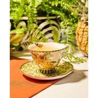 Add a touch of tropical elegance to your tea and coffee moments with the Teacup & Saucer Brazilian Summer. Richly illustrated with vibrant rainforest scenes, exotic wildlife and lush fruit, this beautifully crafted set captures the warmth, colour and joy of a sun-drenched Brazilian escape. Made from glazed ceramic, the teacup features a gently flared rim and comfortable curved handle, designed to sit perfectly in the hand. The matching saucer showcases coordinating geometric patterns and artwork, creating a cohesive and visually striking pairing. Delicate gold detailing along the rim adds a refined finish that elevates the set beyond everyday drinkware. Complete with an illustrated gift box. Ideal for morning tea, afternoon coffee or special occasions, this teacup and saucer brings personality and charm to your table setting. Whether enjoyed solo or styled with guests in mind, its a piece that invites you to slow down and savour the moment. Perfect as a gift or a statement addition to your own collection, the Brazilian Summer Teacup & Saucer pairs beautifully with other pieces from the range, allowing you to create a bold, coordinated look inspired by tropical living.