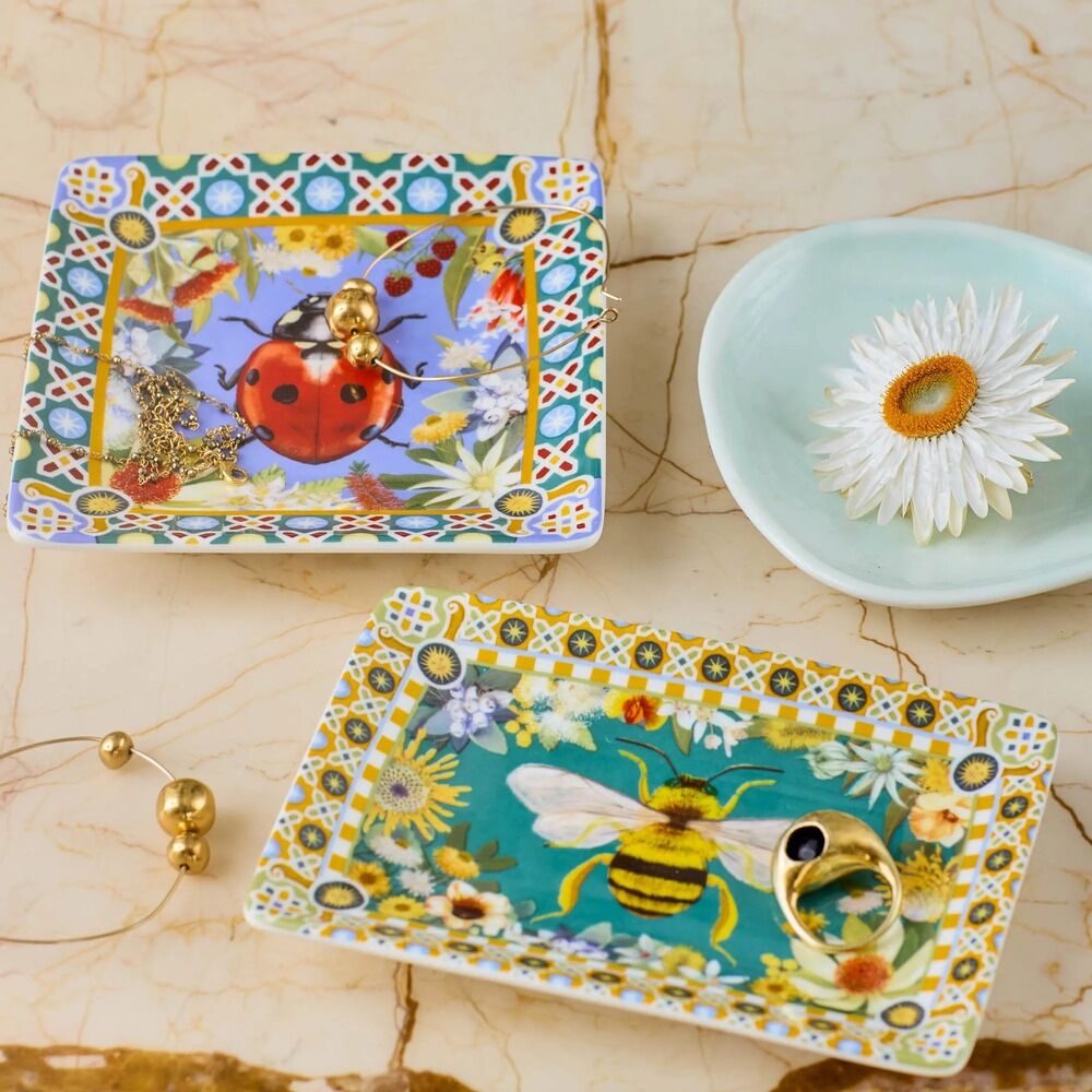 Crafted from premium new bone china, the Good Evening Vol. 2 Ceramic Trinket Tray showcases Australia's stunning flora. Featuring a delicate bumble bee amongst detailed Australian native florals, created by the talented La La Land artist Laura Ramos.