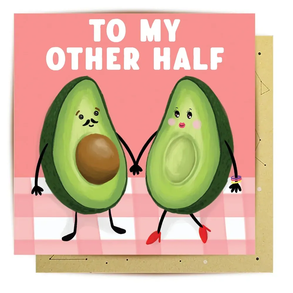 A blank greeting card reading 'To My Other Half' on the cover, with illustrations inside and out. Includes a kraft envelope.