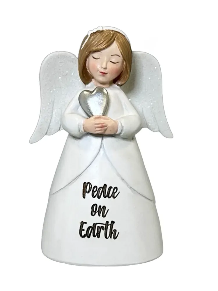 Part of the 'Christmas Blessings Angel' Series - a beautiful angel figurine dressed in white with a silver heart in hand and the words 'Peace on Earth' inscribed. Perfect gift for the Christmas season.