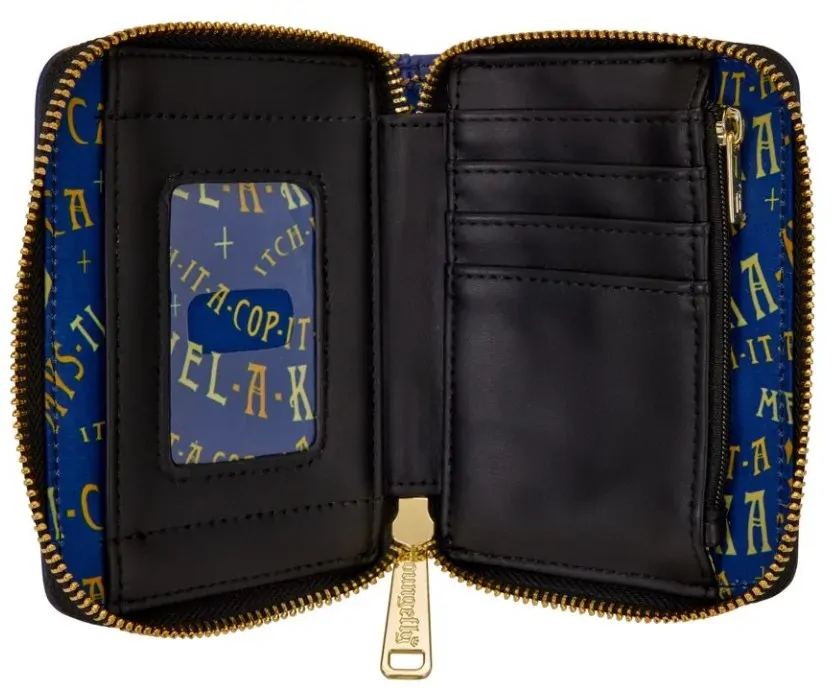Time to cast some spells, it's the witching hour! This zip around wallet is the perfect accessory to show off your love for Disney's Hocus Pocus throughout the season! You'll find the Sanderson sisters on the front, dancing together under a starry sky. On the back, you'll find applique clouds in the night sky. Take a look inside to find four card slots and one clear slot for an ID! Add a little magic to your look this season!