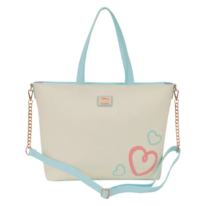 Take your tote bag game to a cuter level! This tote features Stitch and Angel on the front. Behind them is a heart-shaped cake that says "True Love." You'll find puff print hearts on the front and back, as well as a debossed heart pattern all over. There's also a strap to wear it crossbody if you'd like. This is sure to make every day extra sweet!