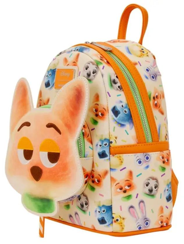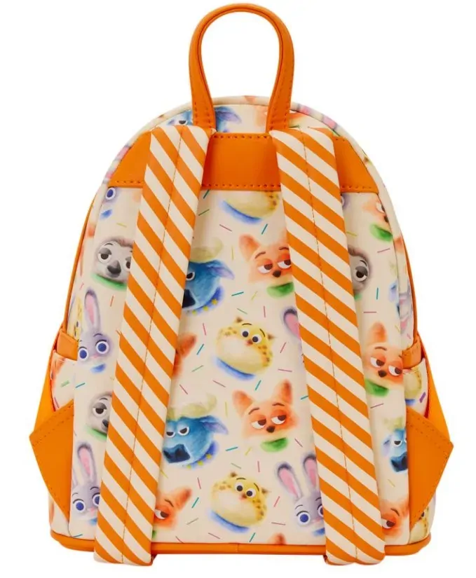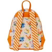 Who's ready for the next installment of Disney's Zootopia?! This super cute mini backpack features some of your favorite characters from Zootopia 2 with a sweet twist! You'll find Nick on the front pocket, who looks like he's made of cotton candy! All over the rest of the bag, you'll find other characters "made of" cotton candy, too! Orange-and-white striped straps bring the whole look together. Add some extra sweetness to your look with this mini backpack, and get ready to watch Zootopia 2!