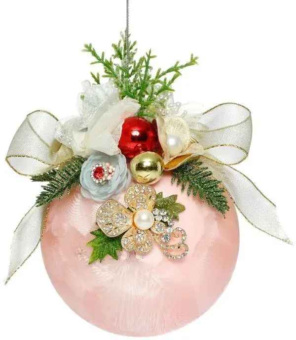 MARK ROBERTS FLORAL JEWELED BALL HANGING ORNAMENT - FROSTED PINK