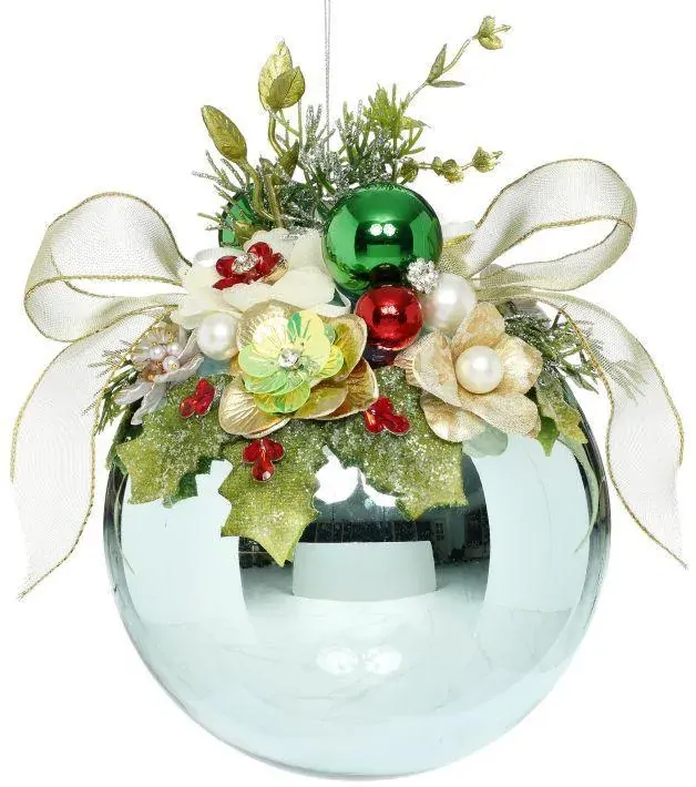 MARK ROBERTS FLORAL JEWELED BALL HANGING ORNAMENT - SHINY BLUE