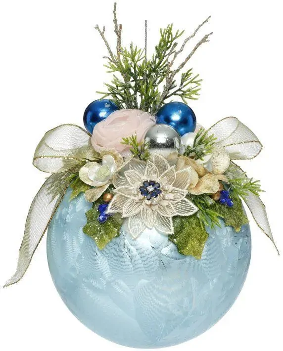 MARK ROBERTS FLORAL JEWELED BALL HANGING ORNAMENT - FROSTED LIGHT BLUE