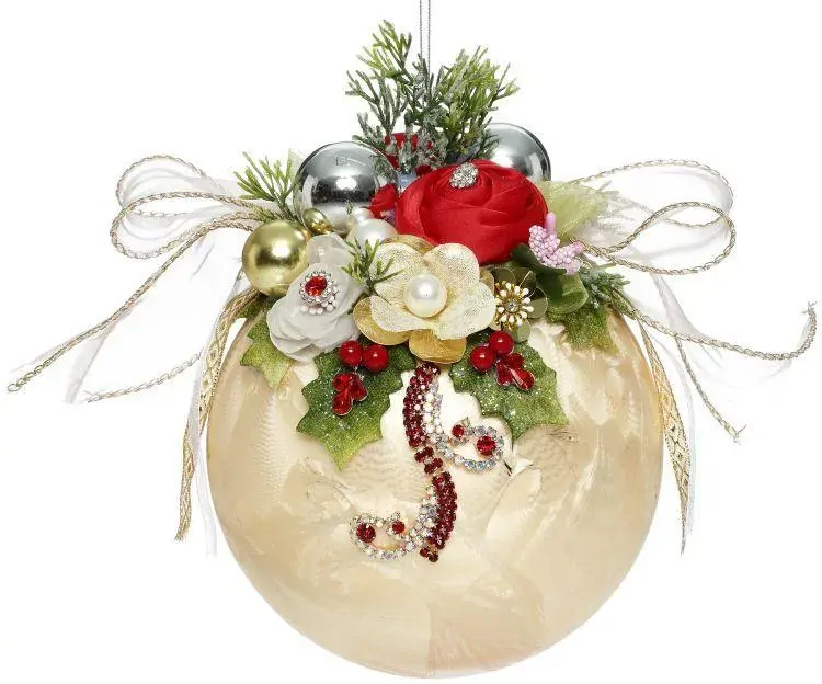MARK ROBERTS FLORAL JEWELED BALL HANGING ORNAMENT - FROSTED GOLD