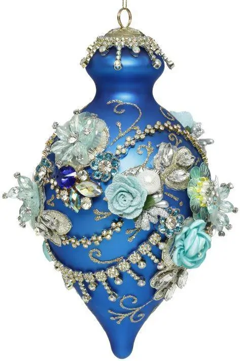 MARK ROBERTS KING'S JEWEL FANCY FINIAL HANGING ORNAMENT - BLUE