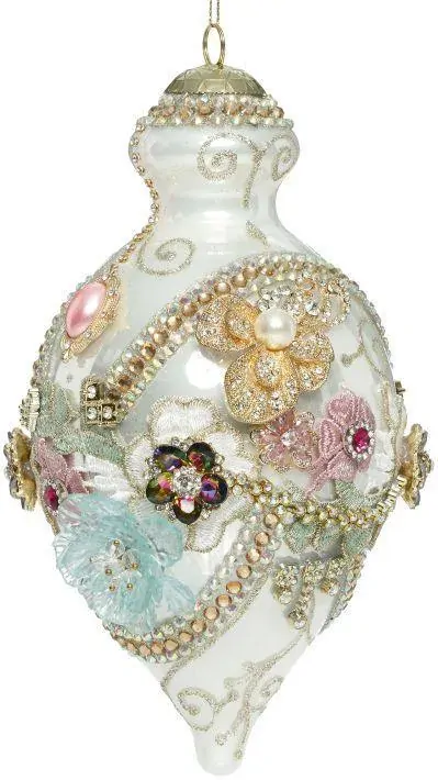 MARK ROBERTS KING'S JEWEL FANCY FINIAL HANGING ORNAMENT - WHITE
