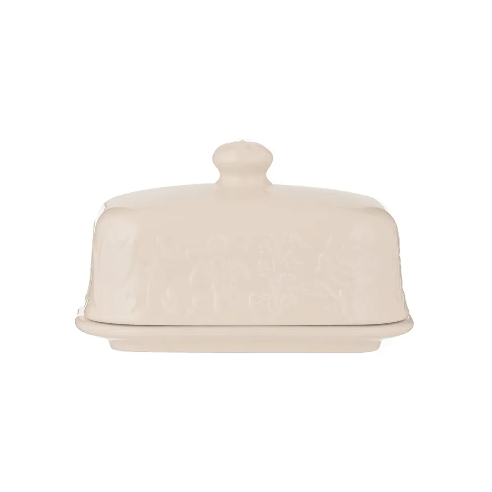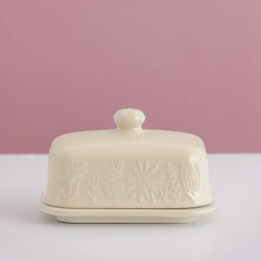 The Mason Cash In the Meadow collection is intricately embossed with delicate florals and foliage, with a beautiful colour palette. A perfect addition to any kitchen. Store, serve and keep butter fresh using this practical Butter Dish. Perfect for storing butter in the fridge or stylish enough to serve at the dining table. The durable, thick base is designed with parallel ridges ensuring the block of butter stays securely in place. The elegant, embossed lid will keep the contents fresher for longer.