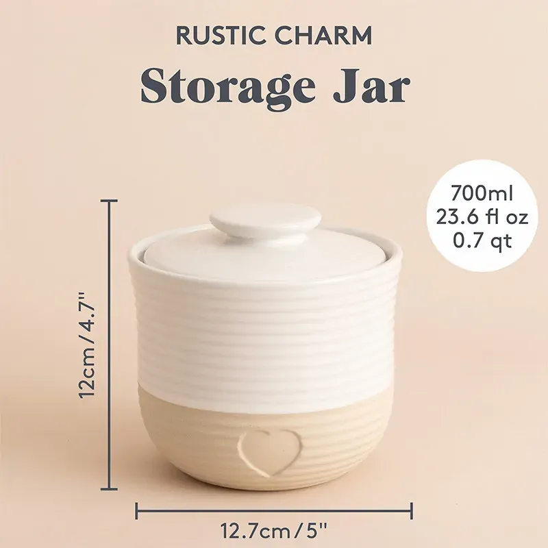 The elegant and sophisticated Rustic Charm collection is inspired by the timeless allure of the French Provincial country kitchens, featuring a subtle debossed heart motif, set in neutral tones and combining a harmonious blend of matt and gloss finishes. The storage jar features a beautiful design which will suit any kitchen. The storage is practical and will keep the kitchen worktop organised. Made from stoneware, the storage is hard-wearing and durable making it perfect for everyday use. The 700ml capacity is ideal for storing your tea, coffee, sugar or rice whilst the airtight lid will keep contents fresher for longer.